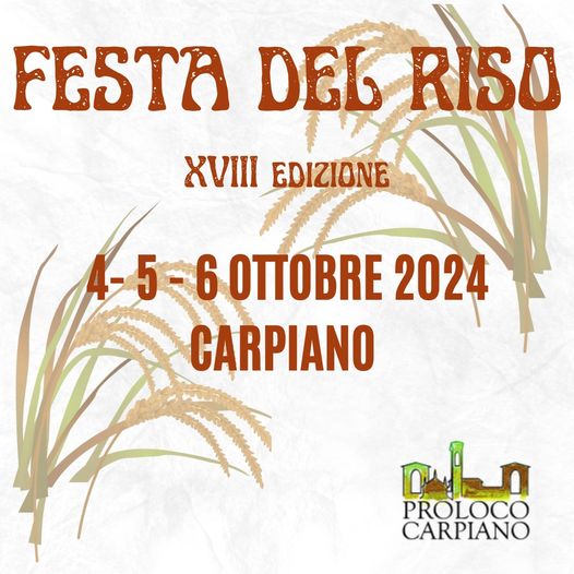Torna l'appuntamento con la storica manifestazione delle Associazioni Carpianesi. Anche in questa edizione saranno protagoniste la gastronomia e le tradizioni del territorio legate al riso, insieme al divertimento e alle tante proposte del volontariato Carpianese.