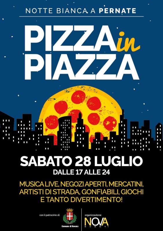 Sabato 28 luglio 2018 a Pernate, frazione del comune di Novara, ci sarà la Notte Bianca con Pizza in Piazza.