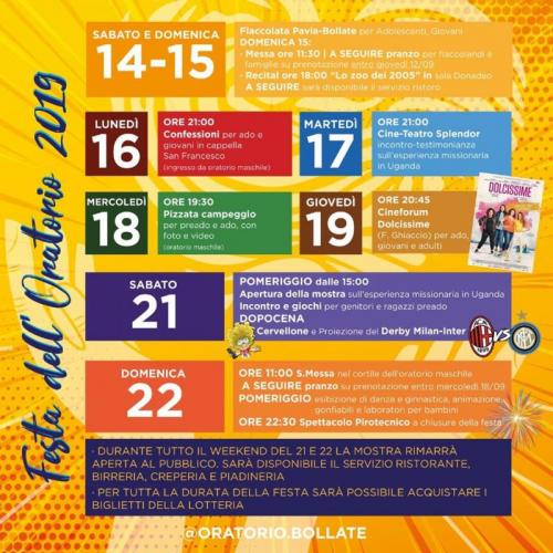 A Bollate in provincia di Milano si svolge nei giorni dal 14 al 22 Settembre 2019 la Festa dell'Oratorio San Filippo Neri.