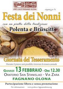 La Pro Loco Fagnano Olona organizza il tradizionale appuntamento annuale della “Festa dei Nonni”, il 13 febbraio 2020 presso l’Oratorio San Stanislao di Via Zara a Fagnano Olona alle ore 12.30.