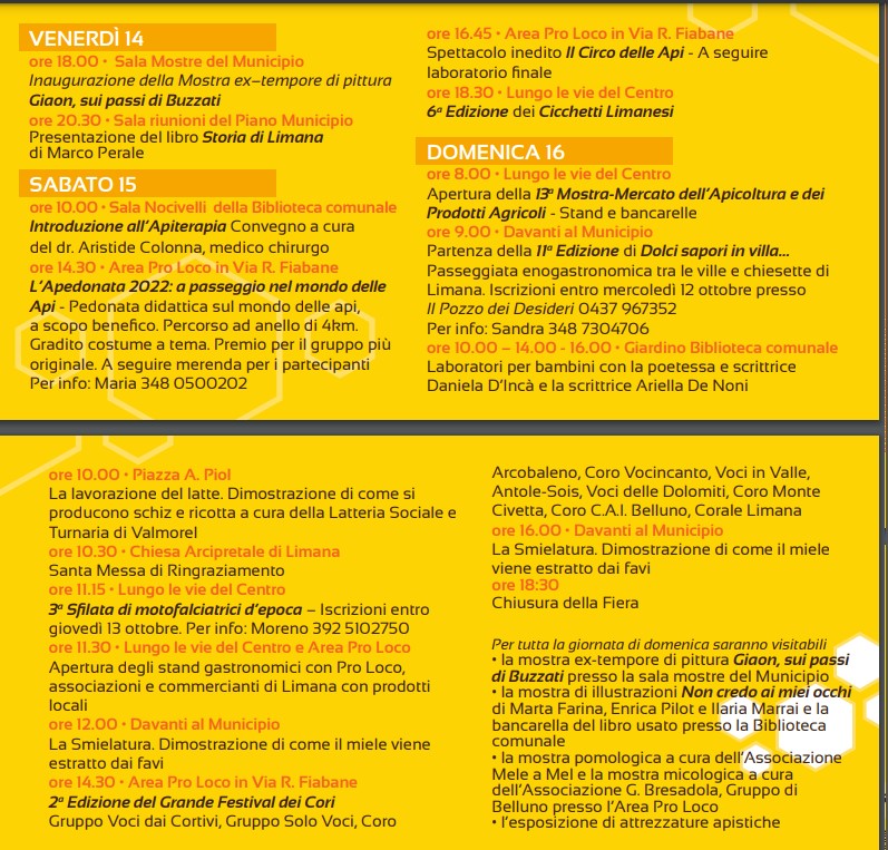Limana Paese Del Miele torna dal 14 al 16 Ottobre 2022.