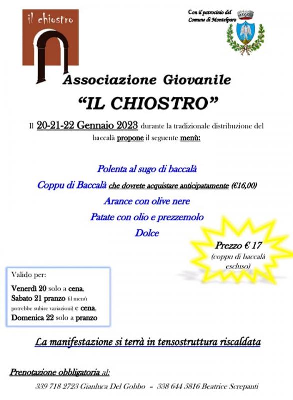 Dal 20 al 20 gennaio 2023 Baccalà in Festa a Montelparo.