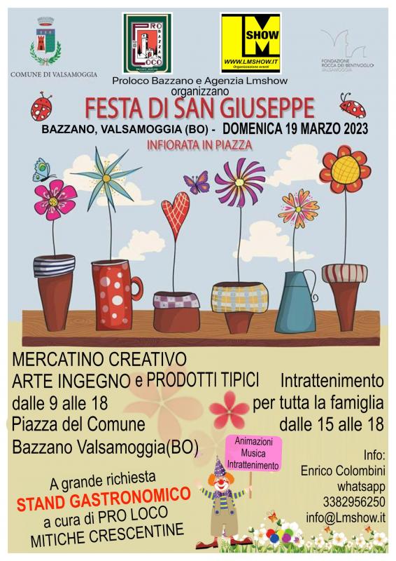 Festa di San Giuseppe a Bazzano 17 marzo dalle 9 alle 20 , piante e fiori, tante specialità alimentari, oltre all' artigianato e mercato ambulante di qualità