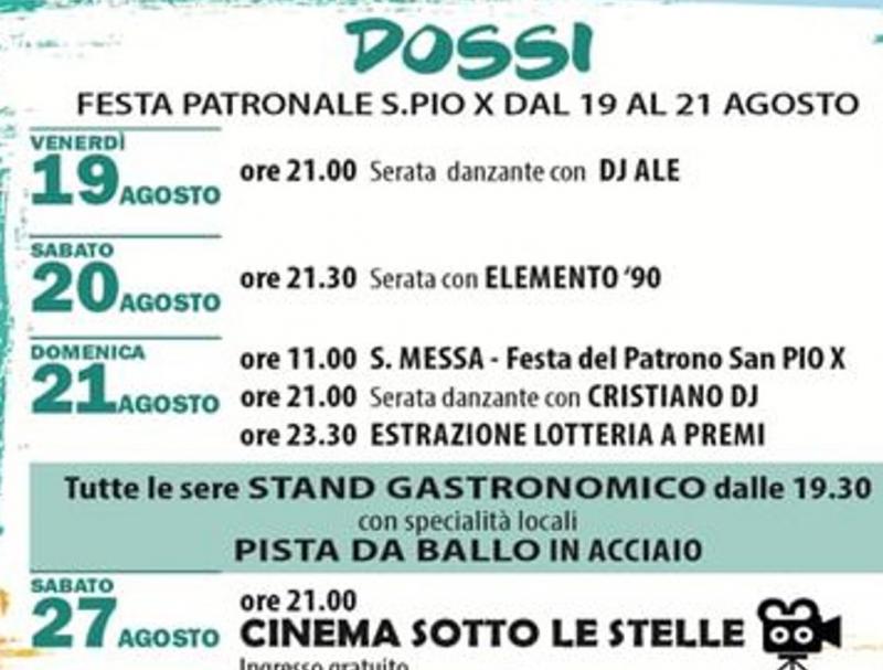 Festa patronale di san Pio a Dossidal 19 al 21 Agosto