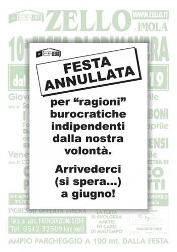 Dal 25 al 29 Aprile 2019 si terrà a Zello, frazione del Comune di Imola, la 10a edizione della Festa di Primavera.