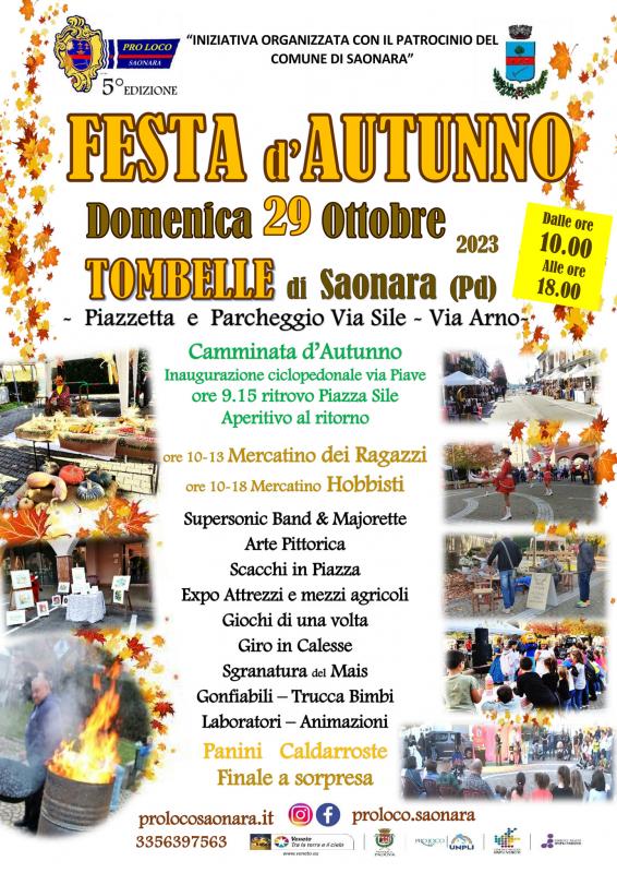 Festa d'Autunno a tombelle di saonara (PD) 29 ottobre 2023 è la festa per la famiglia con mercatino dei ragazzi e mercatino hobbisti, attività e animazione, gioco degli scacchi, esibizioni e truccabimbi, la sgranatura delle pannocchie e lo zucchero filato, le caldarroste e finale a sorpresa per tutti.