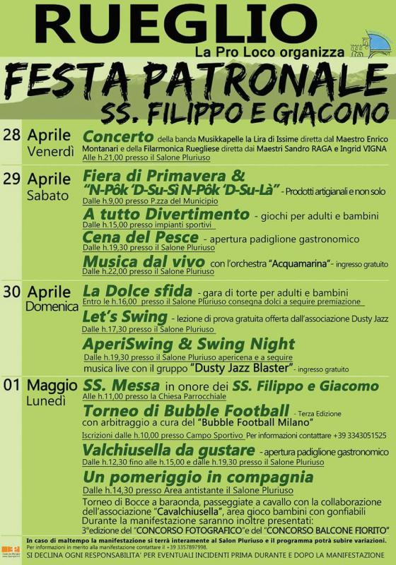La Pro Loco organizza la Festa Patronale dei SS. Filippo e Giacomo con eventi dal 28 aprile all'1 maggio 2017.