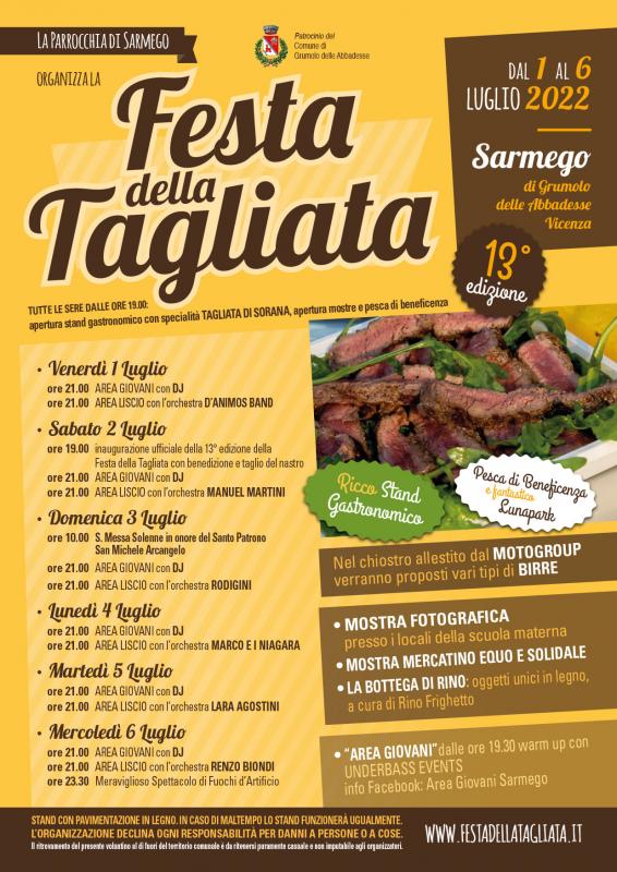 La Festa della Tagliata a Sarmego, frazione del Comune di Grumolo delle Abbadesse in provincia di Vicenza si svolge dal 30 Giugno al 5 Luglio 2023
