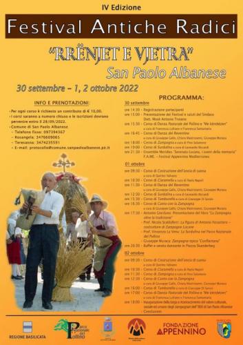 Festival Antiche Radici “RRËNJET E VJETRA”a san paolo Albanese 30 settembre 2 ottobre 2022