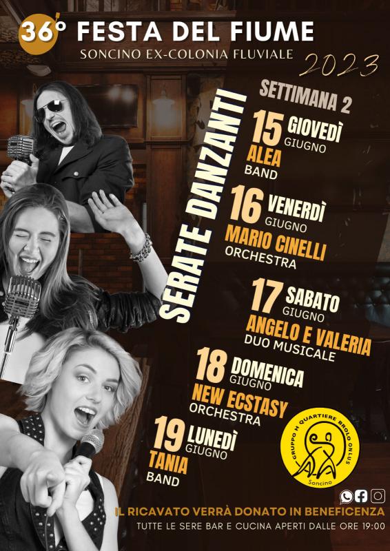 Per 9 serate, presso l'ex colonia fluviale di Soncino in riva all'oglio, Musica, danze e buona cucina, vi terranno compagnia.