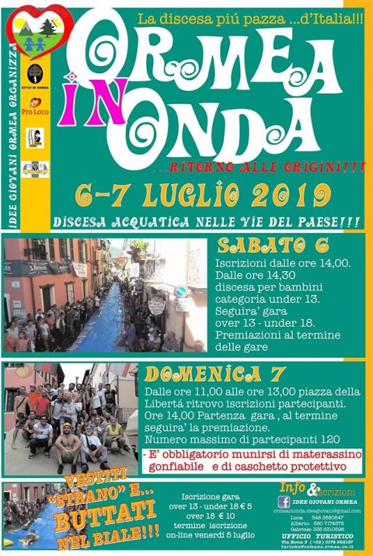 Nel fine settimana, sabato 6 e domenica 7 luglio 2019 l'attesissima "OrmeaInOnda", la discesa acquatica più pazza del mondo: