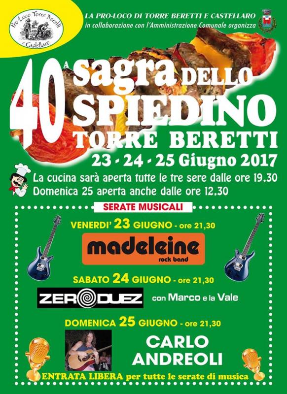La 40° Sagra dello Spiedino a Torre Beretti si svolge il dal 23 al 25 giugno 2017.