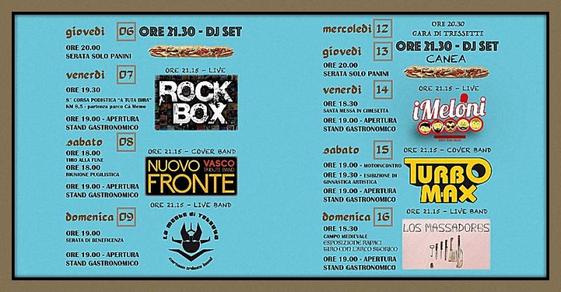 Diniego di responsabilià: le notizie riportate in questa pagina sono state fornite da Enti Pubblici e Privati e, organizzazione eventi e sagre, fiere. Suggeriamo di verificare date, orari e programmi che potrebbero variare, contattando le organizzazioni o visitando il sito ufficiale dell'evento.