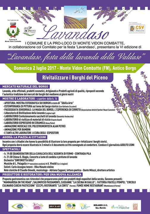 Il COMUNE E LA PRO-LOCO DI MONTE VIDON COMBATTE, in collaborazione col Comitato per la festa ‘Lavandaso’, presentano la VI edizione di “LAVANDASO - FESTA DELLA LAVANDA DELLA VALDASO”