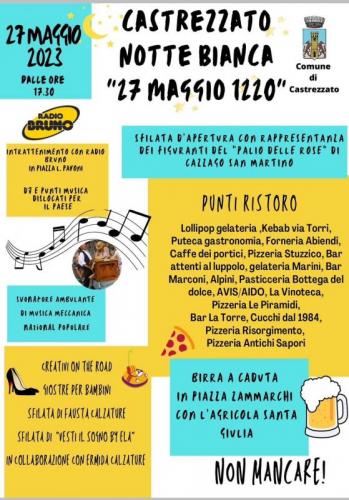 Ci siamo il 27 maggio 21 torna la "Notte bianca di Castrezzato" Musica , mostre ,sfilate di moda , intrattenimento , negozi aperti , market , food e tanto altro per le vie della cittadina .