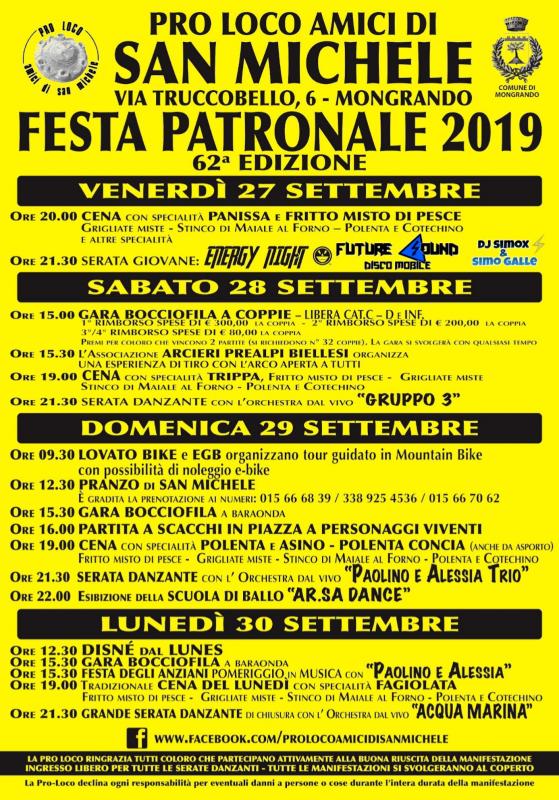 - ORE 12.30 PRANZO DI SAN MICHELE GRADITA LA PRENOTAZIONE AI NUMERI: 015 66 68 39 / 338 925 4536 / 015 66 70 62