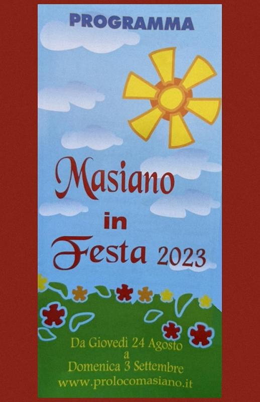 Torna anche quest'anno Masiano in Festa nei giorni da Giovedì 24 Agosto a Domenica 03 Settembre 2023 con una grande novità: la pizza Venerdì, Sabato e Domenica!