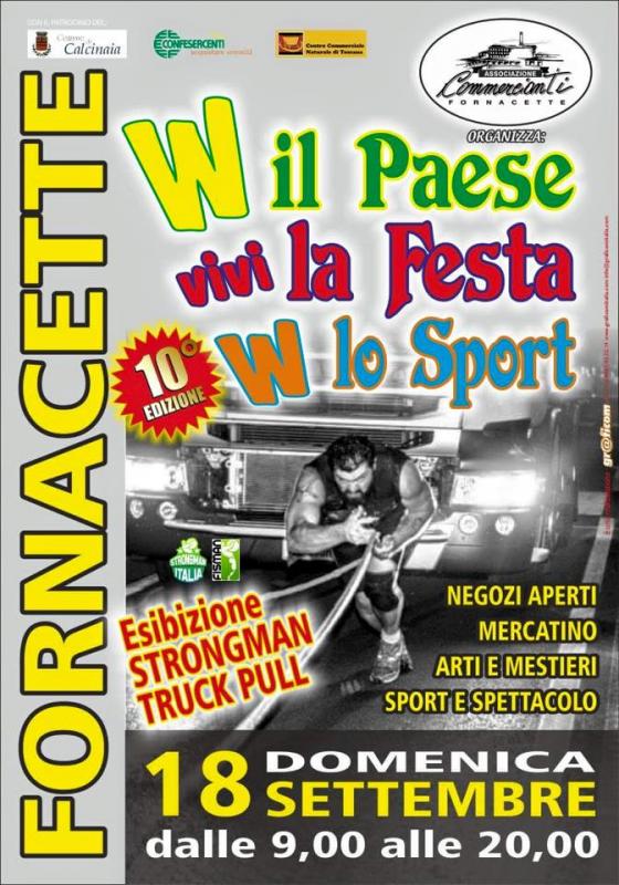 L´iniziativa, realizzata con il patrocinio del Comune di Calcinaia, si svolgerà dalle mattina alla sera di domenica prossima. Tante le iniziative per grandi e piccini allestite dagli iperattivi allestite dal Centro Commerciale Naturale di Fornacette. Tra gli appuntamenti in programma per "W il paese vivi la festa W lo sport 2016" il mercatino di arti e mestieri, l’esibizione degli strongman, tante dimostrazioni sportive e tornei, animazione per bambini e molto altro ancora. Protagonisti della manifestazione i negozi del centro che rimarranno aperti per l´intera giornata.