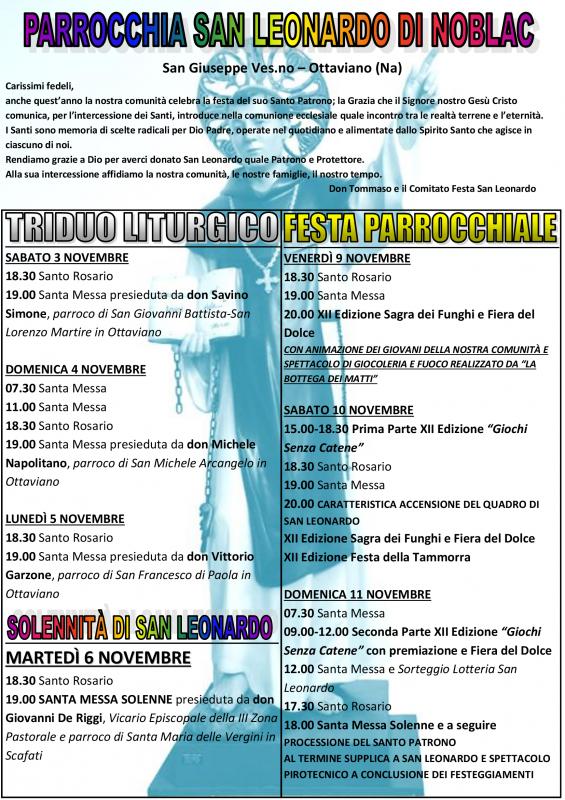Anche quest'anno a San Giuseppe Vesuviano, in Località San Leonardo, ritornano i Solenni Festeggiamenti in Onore di San Leonardo di Noblac, patrono dell'omonima Comunità Parrocchiale di San Leonardo, sita tra i comuni di San Giuseppe Vesuviano e di Ottaviano.