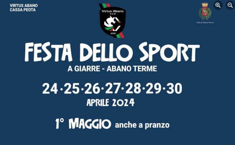 FESTA DELLO SPORT nei giorni 24-25-26, 27, 28-30 aprile e 1 maggio 2024, presso gli impianti sportivi si Via Podrecca a Giarre, Abano Terme.