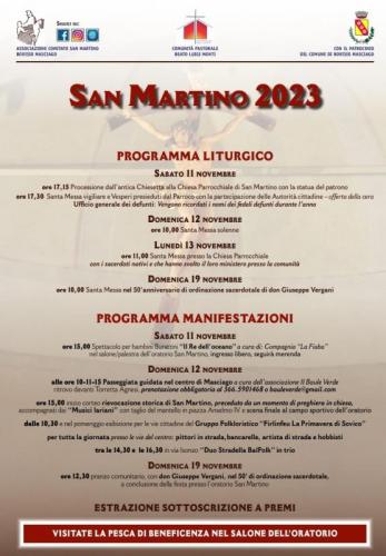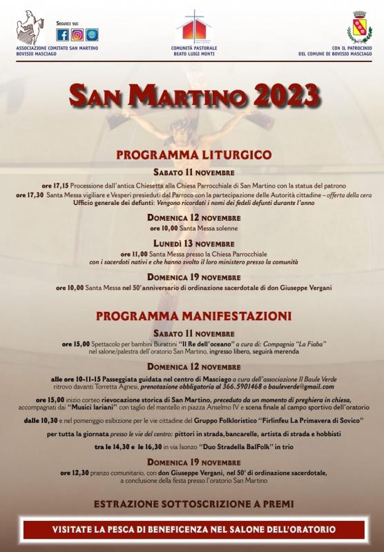 SABATO 11 NOVEMBRE ore 17,15 Processione dall'antica Chiesetta alla Chiesa Parrocchiale di San Martino con la statua del patrono ore 17,30 Santa Messa vigiliare e Vespe, presieduti dal Parroco con la partecipazione delle Autorità cittadine-offerta della cera Ufficio generale dei defunti: Vengono ricordati i nomi dei fideli defunti durante l'anno