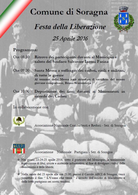 Programma delleCelebrazioni del 25 apile, 71° Festa della Liberazione, a Soragna: