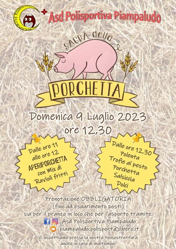Dalle ore 11 alle ore 18 vi aspettiamo a Piampaludo per una giornata all'insegna della porchetta cotta dai nostri cari amici sardi, secondo la loro tradizione, all'interno del nostro parco.. potrete vederli all'opera passeggiando tra le bancarelle dell'artigianato per poi gustare tutti insieme le splendide porchette e proseguire la giornata tra shopping e relax al fresco.