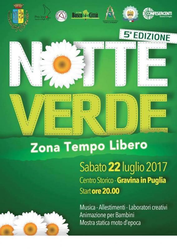La 5° Edizione del “LA NOTTE VERDE” - in programma il 22 luglio a Gravina in Puglia (Ba) – avrà quest’anno come tema il “Tempo Libero”, per sperimentare e cimentarsi. Un tempo da dedicare ai propri desideri.