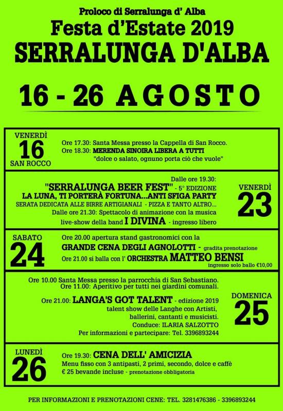Dalle ore 19.30: "SERRALUNGA BEER FEST" - 5° EDIZIONE