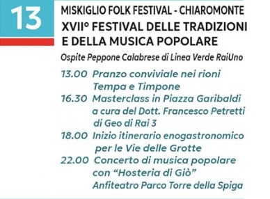 A Chiaromonte in provincia di Potenza si svolge nella giornata di 13 Agosto 2023 l'edizione del Festival delle Tradizioni e della Musica Popolare.
