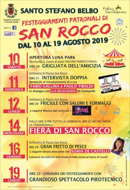 Festa di San Rocco 2019. Festa patronale a Santo Stefano Belbo dal 10 al 19 Agosto 2019
