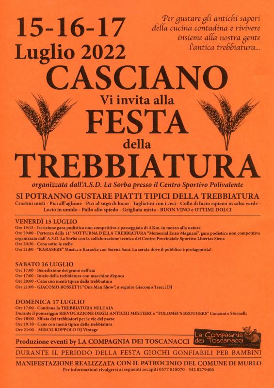 Festa della Trebbiatura a Casciano 15-16-17 Luglio 2022 Per gustare gli antichi saporí della cucina contadina