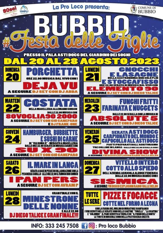 la Festa delle figlie, programmata dal 20 al 27 agosto .2023