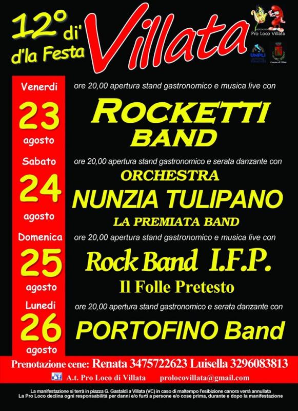 Da Venerdì 23 a Lunedì 26 Agosto 2019 a Villata (VC) si svolge la 12a edizione di Dì d'la Festa.
