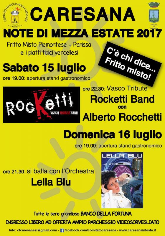 Alla sagra estiva troverete musica e specialità caresanesi. Tributo a Vasco della Rocketti Band.
