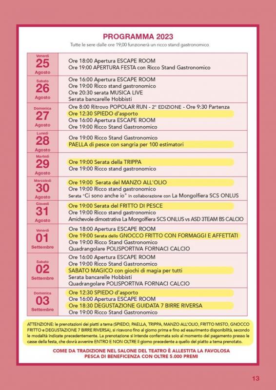 Diniego di responsabilià: le notizie riportate in questa pagina sono state fornite da Enti Pubblici e Privati e, organizzazione eventi e sagre, fiere. Suggeriamo di verificare date, orari e programmi che potrebbero variare, contattando le organizzazioni o visitando il sito ufficiale dell'evento.