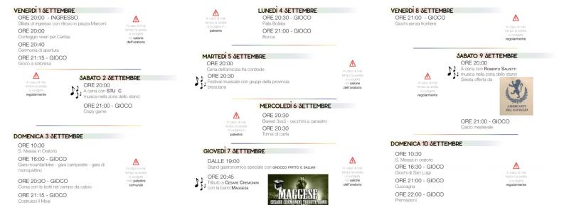 A San Zeno Naviglio in provincia di Brescia si svolge dal 1 al 10 settembre 2023 la 34a edizione del Palio delle Contrade.