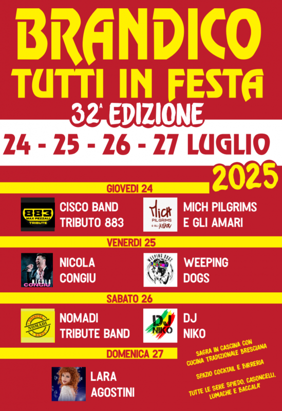 Diniego di responsabilià: le notizie riportate in questa pagina sono state fornite da Enti Pubblici e Privati e, organizzazione eventi e sagre, fiere. Suggeriamo di verificare date, orari e programmi che potrebbero variare, contattando le organizzazioni o visitando il sito ufficiale dell'evento.