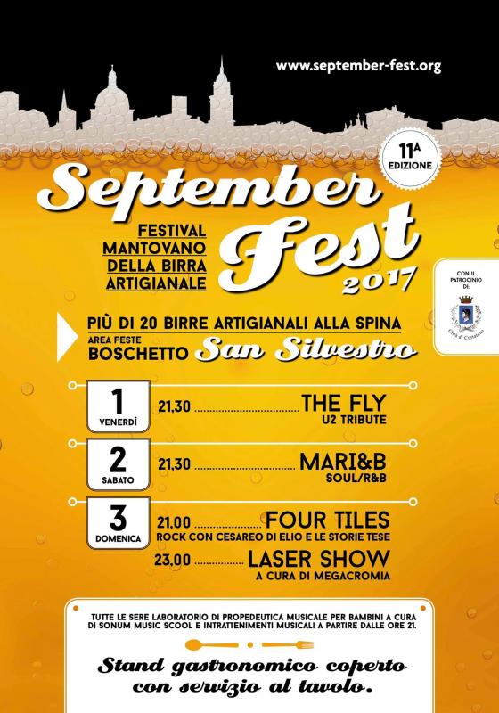 Torna da venerdì 1 a domenica 3 settembre 2017 il September Fest, la festa della Birra Artigianale Mantovana che si svolge presso il Centro Sportivo Boschetto a Curtatone (MN).