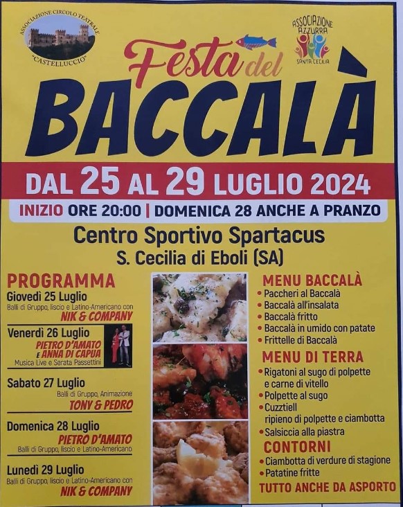 Festa del Baccalà a Santa Cecilia di Eboli dal 25 al 29 Luglio, al centro sportivo Spartacus