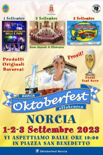 Oktoberfest, una grande festa della birra a Norcia che animerà la città della Valnerina per l’intero weekend. Da venerdì 1 a domenica 3 settembre l’Oktoberfest porterà in piazza San Benedetto i prodotti tipici bavaresi e, inoltre, suggellerà la storica amicizia tra Norcia e la città bavarese di Ottobeuren, di cui quest’anno ricorre il quarantesimo anniversario dello storico gemellaggio. Tre giorni dedicati a cibo, birra e musica a cui parteciperanno anche i rappresentanti del Comune di Ottobeuren, presente con una folta delegazione, e l’Associazione del gemellaggio. Dalle 19 in poi sarà possibile degustare prodotti tipici locali e bavaresi di una delle più conosciute feste al mondo. Non mancheranno, inoltre, gli appuntamenti di intrattenimento con l’orchestra spettacolo Bulli & Pupe (venerdì 1 settembre), la banda musicale di Ottobeuren (sabato 2) e il trio musicale Daje Gas (domenica 3)