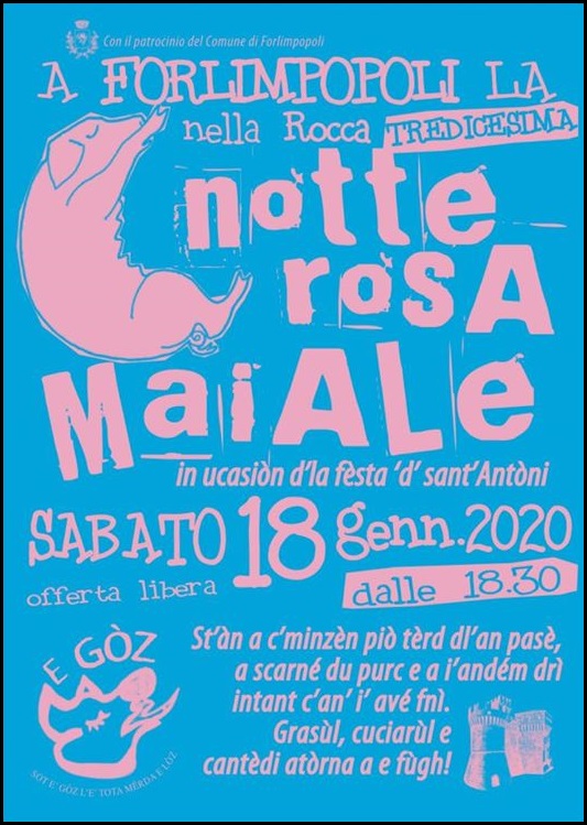 In Occasione della Festa di Sant'Antonio 2020 torna l'appuntamento annuale con l'Associazione E Gòz e Forlimpopoli si veste a festa con la Notte Rosa Maiale per la tredicesima volta.