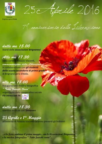 Il Comune di Brignano Gera d'Adda il 25 Aprile, per il 71° anniversario edlla Liberzione, oltre alla commemorazione dell'importante data storica, festeggia con musica, mercatino degli hobbisti e mostra.