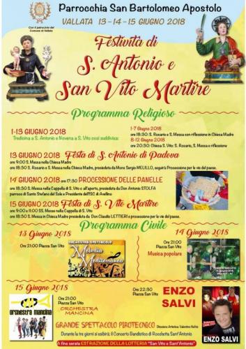 Vallata (AV) - Presentato il programma 2018 delle Festività in onore di San Vito Martire e Sant’Antonio da Padova, che si terranno in Vallata il 13-14-15 giugno.