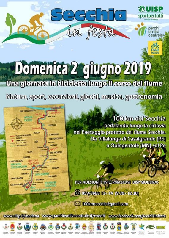 Domenica 02 Giugno 5^ edizione “Secchia in Festa”: una giornata in bicicletta lungo il corso del fiume tra natura, sport, escursioni, giochi, musica e gastronomia, organizzata dai Parchi dell’Emilia Centrale in collaborazione con Uisp e Fiab, con il patrocinio di tutti i Comuni attraversati dal fiume Secchia.