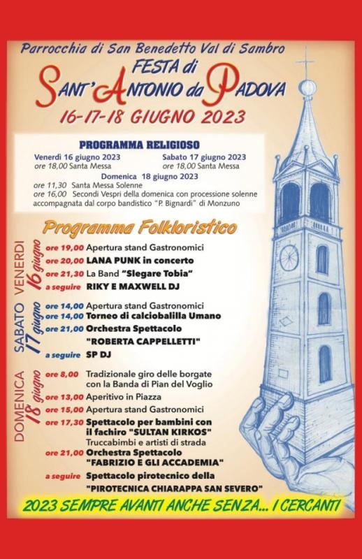 A San Benedetto Val Di Sambro in provincia di Bologna si svolge nei giorni 16, 17, 18 Giugno 2023 la nuova edizione della Festa Di Sant'Antonio da Padova.