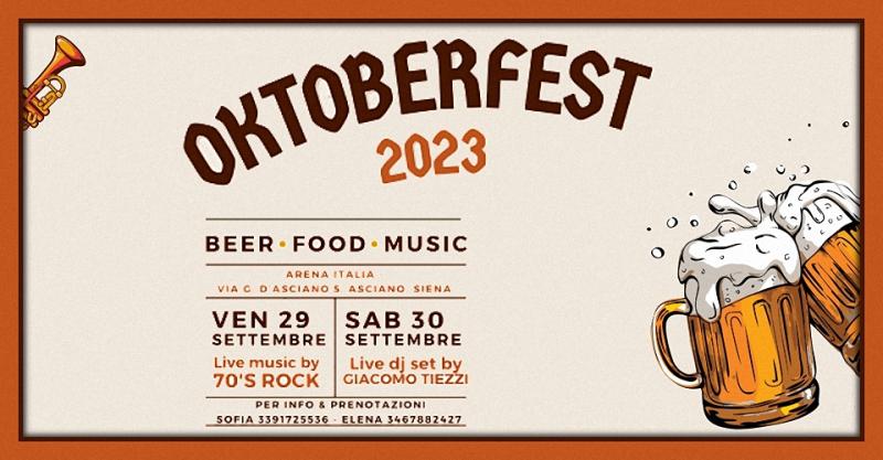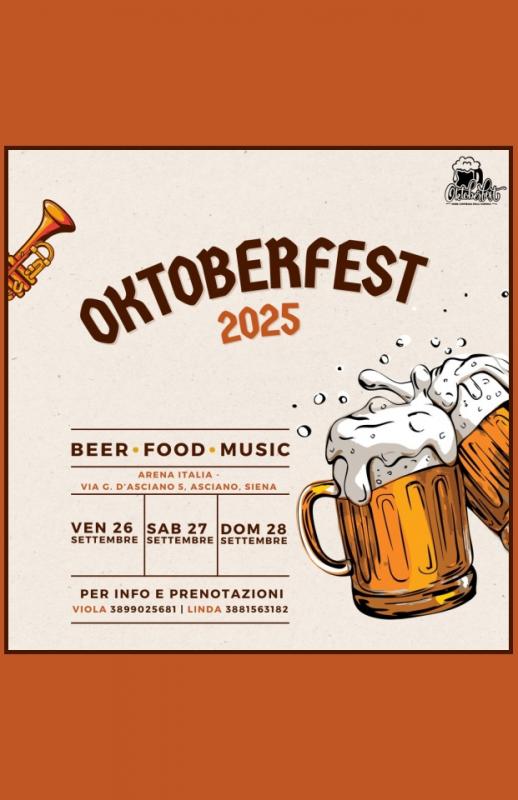 Venerdì 26, Sabato 27 e Domenica 28 Settembre vi aspettiamo numerosi all’Arena Italia (Via G. d’Asciano 5, Asciano, Siena) per degustare le oltre 25 deliziose birre provenienti da tutto il mondo, per assaggiare specialità culinarie bavaresi in pieno stile oktoberfest e per divertirvi e scatenarvi insieme a noi sulla pista da ballo!