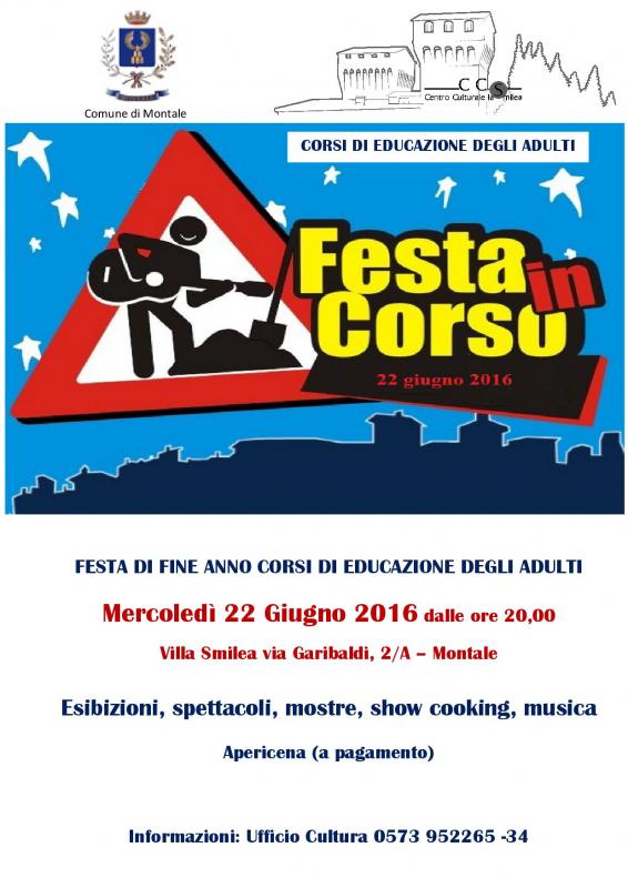 Mercoledì 22 Giugno 2016 dalle ore 20.00, si terrà a Villa Smilea la festa di conclusione dei corsi di educazione agli adulti dell’anno formativo 2015 -2016.