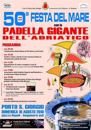 A Porto San Giorgio si celebra, il 18 Agosto, l'ormai celebre Festa del Mare. con Padellata Gigante dell’Adriatico.