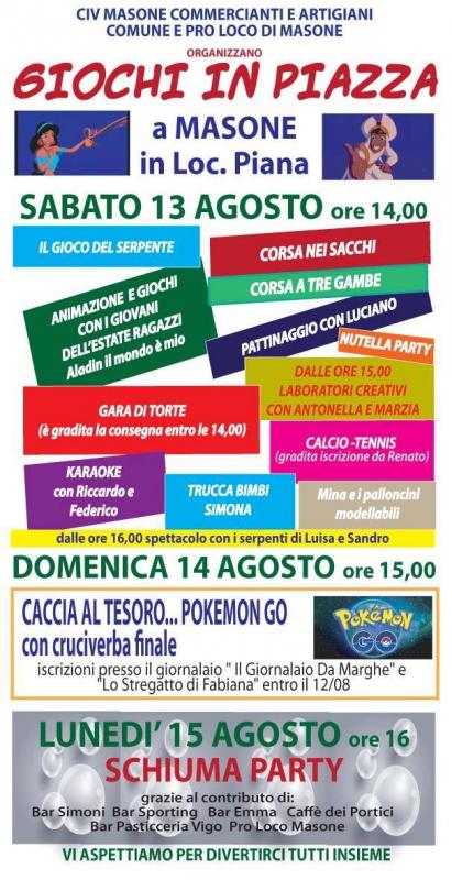Da Sabato 13 a Lunedì 15 Agosto 2016 - dalle ore 14:00